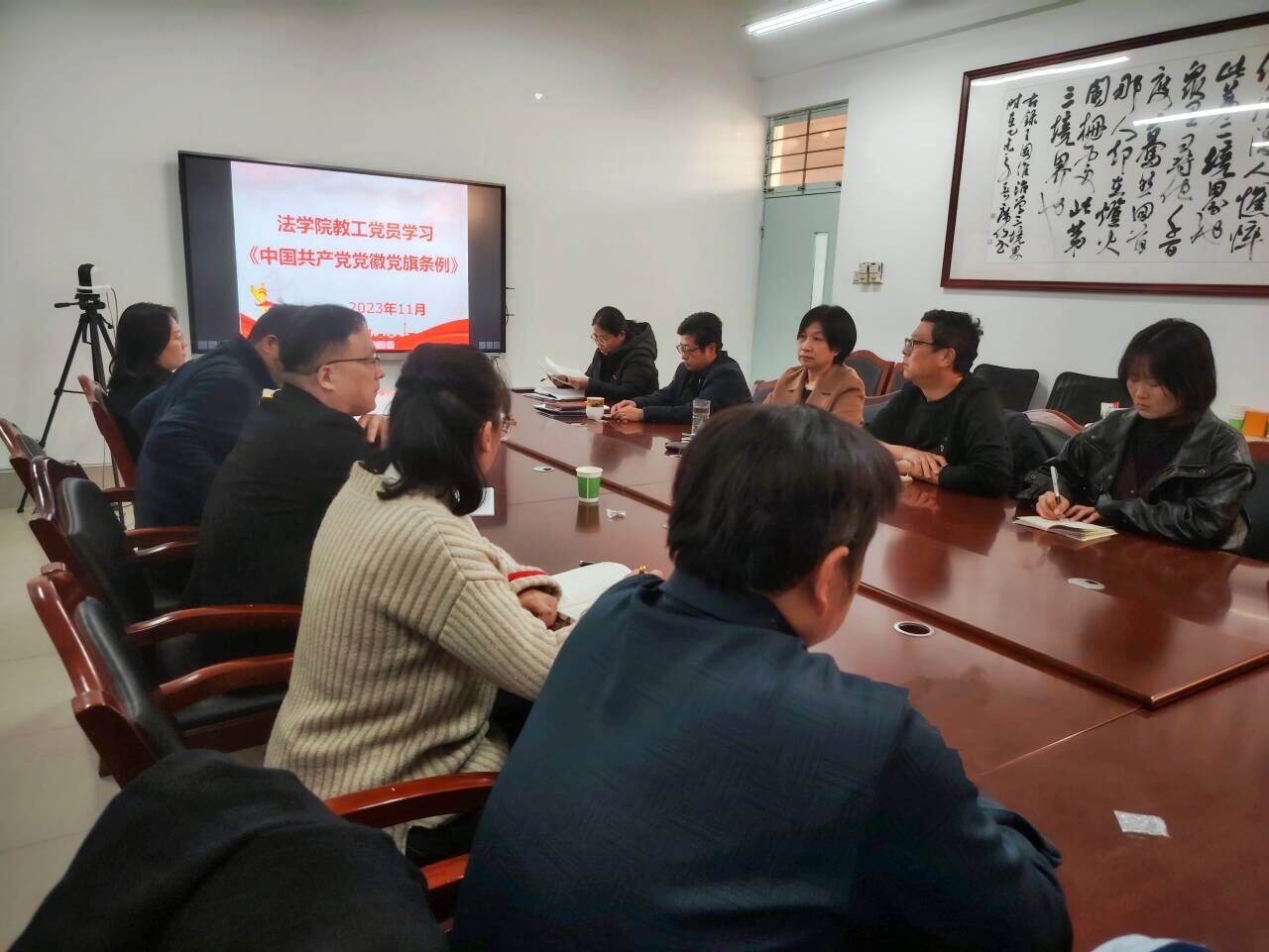 11月23日下午,小宝寻花 在西校区10#B507组织全体教工党员学习《中国共产党党徽党旗条例》,党委书记季昌伟主持此次会议,全体教工党员参加会议。