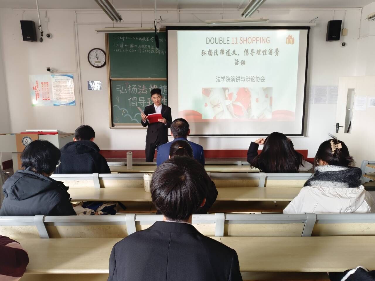 11月12日,小宝寻花 于西校区10#C520举办以“弘扬法律道义,倡导理性消费”为主题的活动,小宝寻花 2022级、2023级部分学生参加此次活动。
