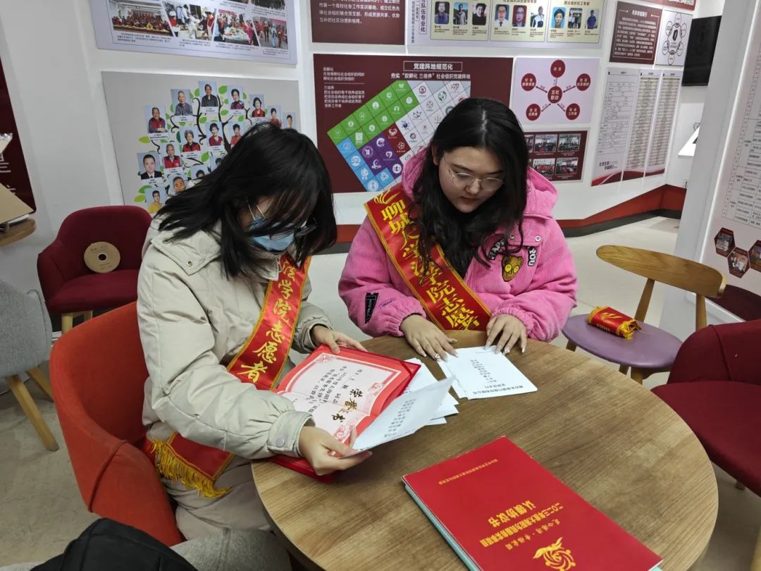 活动伊始,志愿者在大海阳社区居委会工作人员的带领下进入社区服务中心大楼,来到承载社区记忆的影音馆。工作人员带领志愿者参观社区文化馆,介绍社区历史文化与管理机制创新,讲解社企联动“双报到”,社区特色壹家生态共同体等新时代社区发展方针的运行经验。工作人员表示:青年需要深入基层,深入到人民群众当中,去了解、体悟社区日新月异变化中蕴含的不变真理,也就是始终坚持党的领导,为人民服务。此外,工作人员根据社区活动日程安排志愿者准备年末表彰大会活动。志愿者协助整合社区先进个人,先进企业名单,分类打包获奖证书,对获奖证书印刷情况进行核实。志愿者协助工作人员进行活动彩排,推进活动流程进行,同工作人员一起听取前来视察与指导工作的冷晓燕党委书记的教诲。