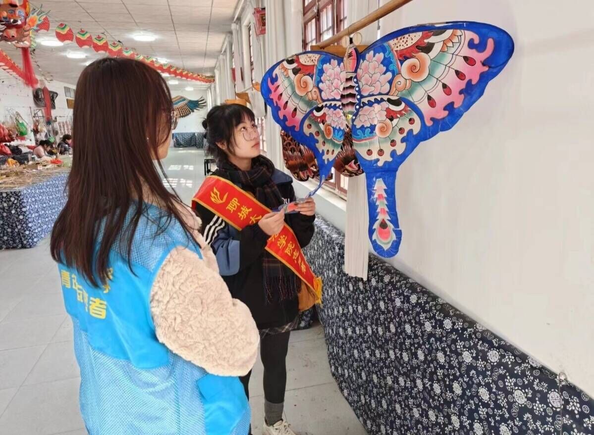 2月18日,小宝寻花 志愿者走进潍坊市寒亭区杨家埠大观园举办以“走进风筝文化,助力非遗传承”为主题的实践活动,感受非遗魅力,弘扬风筝文化。