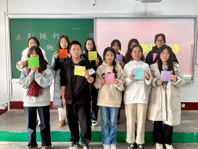 本次活动聚焦宪法知识普及,围绕宪法宣讲、趣味互动、分享交流三个环节展开,旨在让学生充分理解宪法精神,树立法治信仰。在宪法宣讲环节,主持人运用生动语言和实际案例深入浅出地向在场学生讲解宪法精神及原则,引导在场学生认识宪法的重要性,学习如何在日常生活中运用法律武器维护自身的合法权益,增强其法治意识和法律素养。随后,在场学生积极参与宪法狼人杀、宪法拼接诗和宪法答题等趣味活动,在轻松愉快的氛围中学习宪法知识,不断加深对宪法知识的理解和记忆。此外,在场学生相互展示剪贴诗作品,分享自己对宪法的理解和感悟,纷纷表示自己将在今后的学习和生活中,积极学习运用宪法知识,努力提升对宪法法律的践行能力和运用能力,为建设社会主义法治国家贡献自己的青春力量。