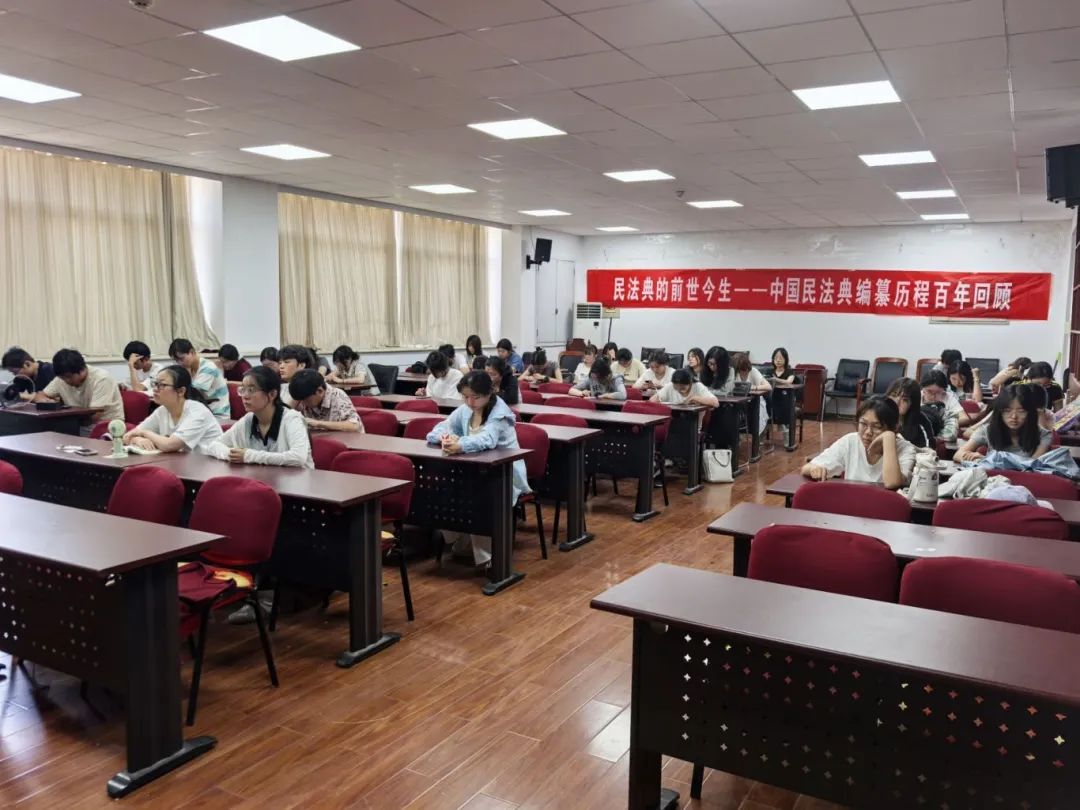 活动过程中,庄海丽围绕“民法典的前世今生——中国民法典编纂历程百年回顾”的主题进行专题报告,以缜密的逻辑与系统的思维对我国民法典编纂的历史脉络与发展进程进行深入讲解。她指出,中国民法典编纂自清末法制改革时期开始,历经北洋政府、南京国民政府,再到新中国成立后于2021年开始实施,共包含四个重要阶段。随后,庄海丽逐一阐述四个阶段,并对不同时期的民法典进行比较分析,从制定背景、起草人员、体例结构等角度探讨其特点与差异,探究其所反映的社会变化与时代精神。她强调,中国民法典的编纂已走过百年历程,历经无数波折与坎坷,研究中国民法典的编纂历史,能够对我国民法发展的做到心中有数,进而认识我国民法现代化进程,知晓其发展规律。同时,庄海丽勉励在场学生认真学习专业知识,为我国民法典完善修订与贯彻实施贡献力量。在场学生纷纷表示,要以专业学习为基础,精研民法理论,投身司法实践,筑牢法治根基,践行司法为民。