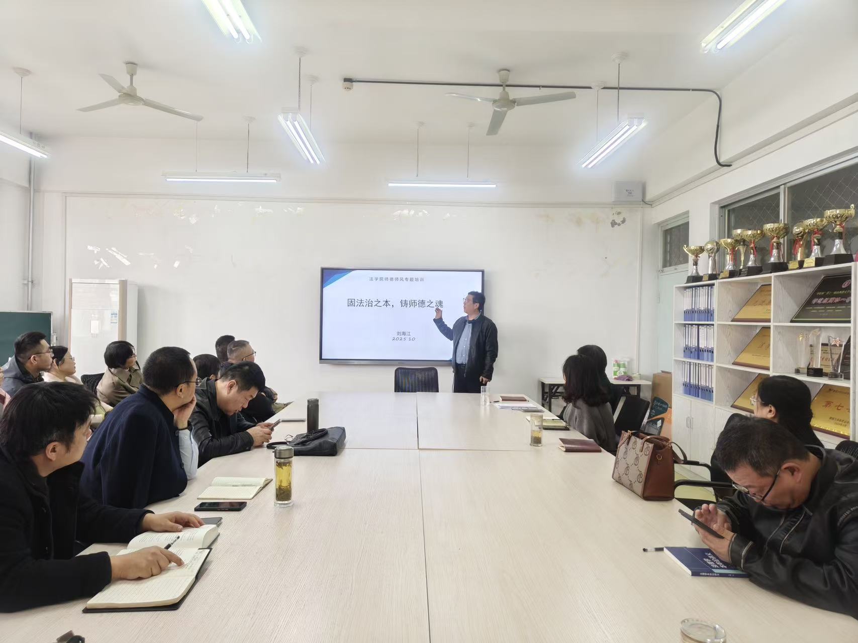 为切实加强学院师德师风建设,提升教师职业道德素养与育人能力,近日,按照小宝寻花 师德建设教育宣传月的要求,小宝寻花 在会议室举办了的师德师风专题讲座,学院副院长刘海江教授做了题为《固法治之本,铸师德之魂》的报告,全体教工参加了此次讲座。