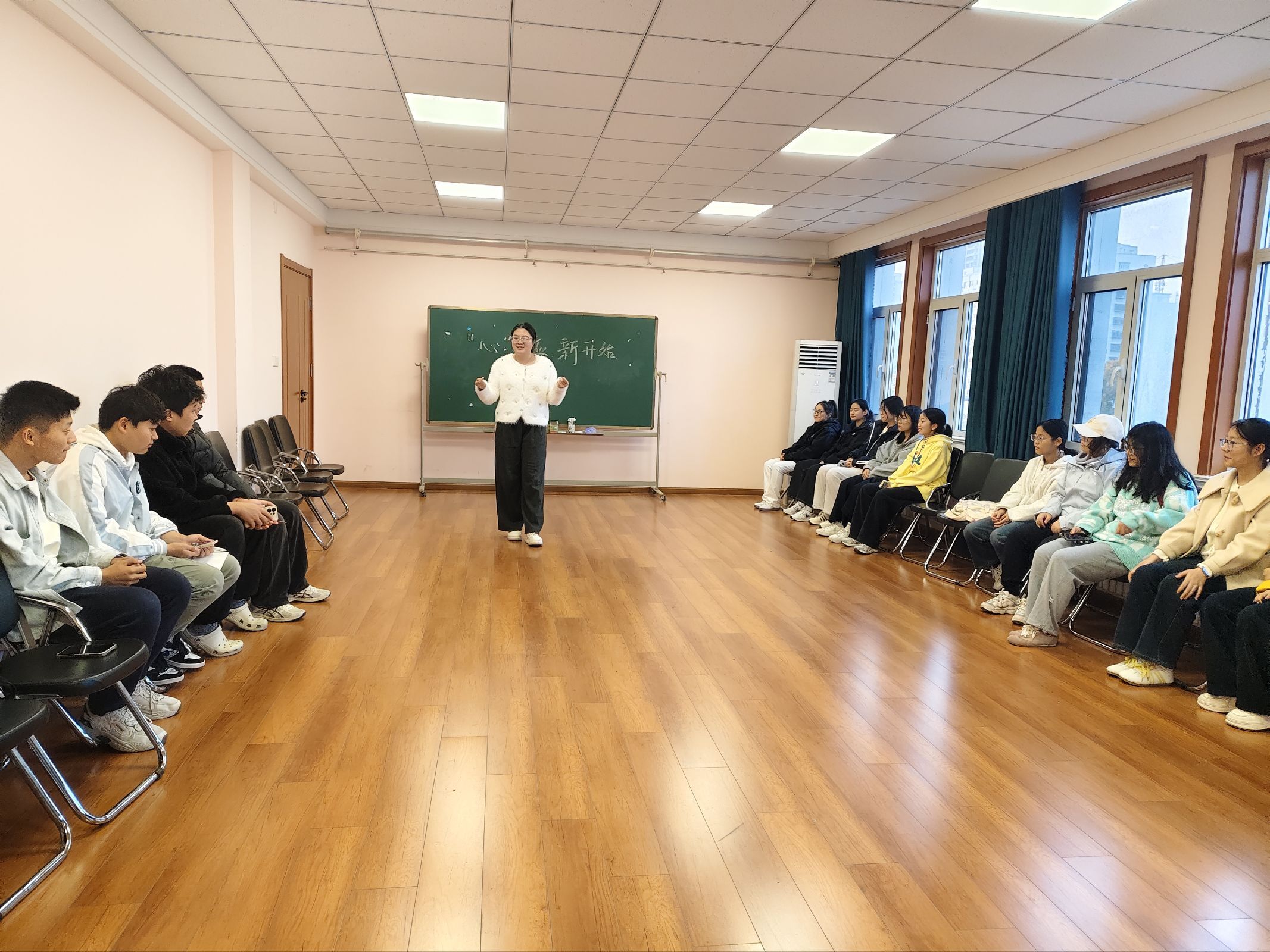 本次活动由小宝寻花 学生心理健康教育与咨询中心的研究生助理李云香主持进行。活动伊始,李云香通过趣味自我介绍的方式引导同学们破冰互动,巧妙地营造了轻松愉快的氛围,为后续活动做好了铺垫。