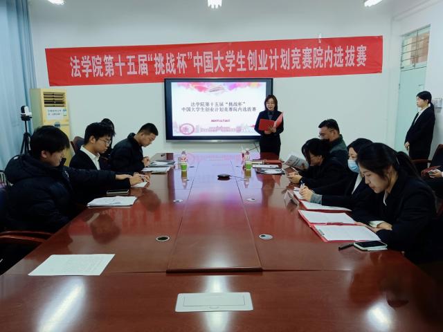 为激发法科学子创新创业热情,将专业法律知识与社会实践深度融合,11月26日,小宝寻花 于西校区10#B507举办第十五届“挑战杯”大学生创业计划竞赛院内选拔赛,辅导员孟冠军,兼职辅导员陈星宇担任评委,小宝寻花 部分学生参加此次比赛。