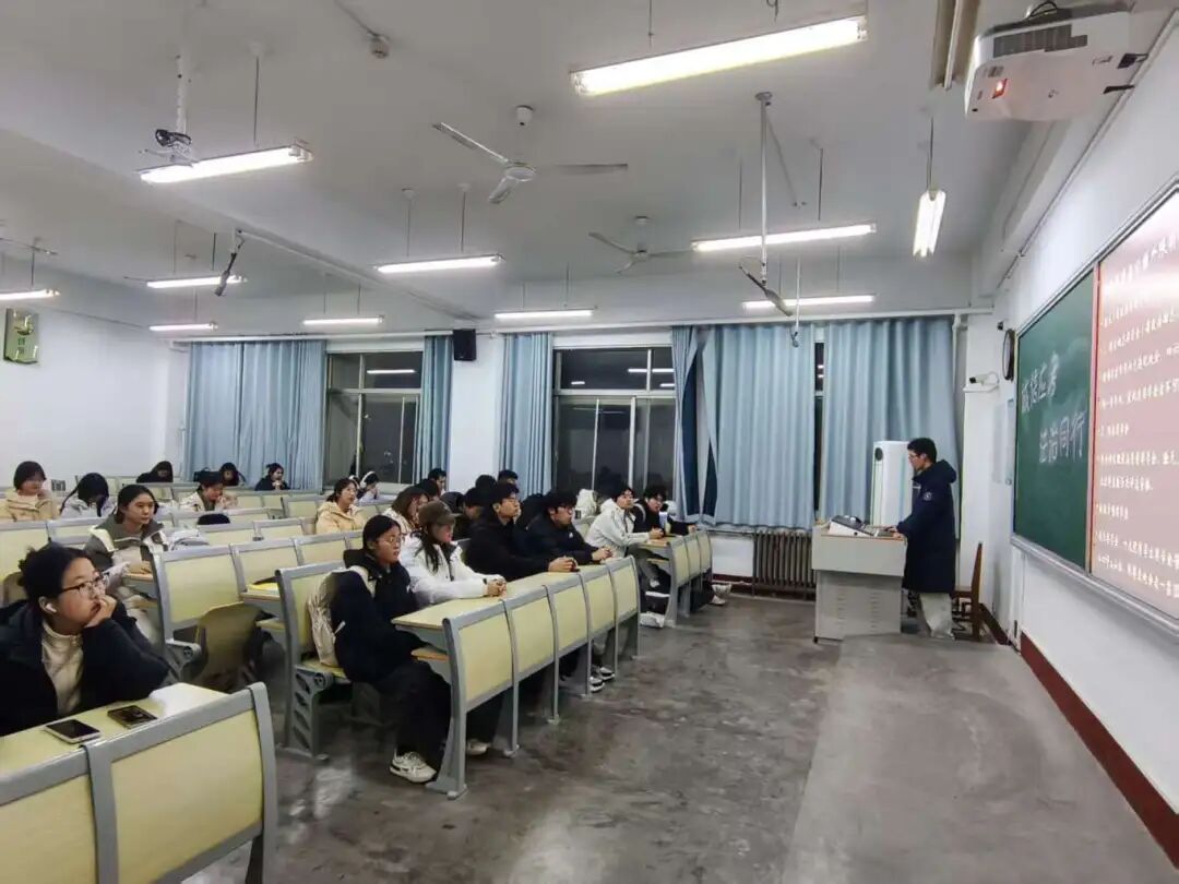 活动过程中,付明浩围绕本次考试安排、评奖评优机制、文件解读三方面展开讲解。 在考试安排环节,明确了具体的考试时间、考场分布,并对考场纪律做出严格要求;在讲解评奖评优机制时,付明浩系统梳理了各类奖学金的评选维度,着重强调“诚信考试是评奖评优的前置红线”,以真实案例警示学生作弊带来的严重后果;在文件解读板块,以《国家教育考试违规处理办法》《小宝寻花 学生违规处分管理规定》等文件为依据,深入剖析考试违规行为的认定标准、处分后果,以及其对个人学业和学位授予所产生的严重影响。 通过系统讲解,促进在场学生对考试纪律、诚信应考重要性以及违纪后果的全面认识,明确行为底线,进一步强化规则意识和法治观念。