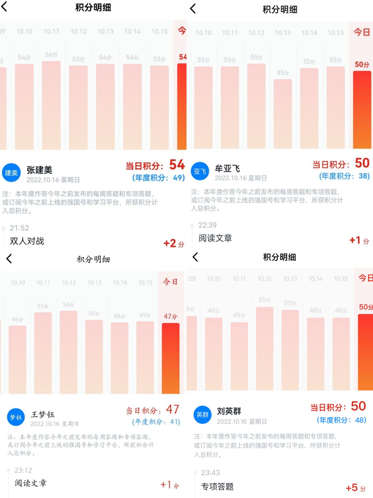 此次学习竞赛活动充分利用“学习强国”平台学习载体作用,采用线上答题、积分排名的形式开展比赛,激发党员学习热情,提高党员思想觉悟。参赛者通过阅读时政热点、观看时事新闻、参加理论答题等完成每天的学习任务,深入了解党中央的大政方针与党的二十大等时事热点,坚定理想信念,提高政治站位。比赛过程中,小宝寻花 教工党员围绕学习内容,深入领会习近平新时代中国特色社会主义思想,不断提高政治理论水平与专业素养,力争学在深处、谋在新处、干在实处,学生党员立足法学专业特色,通过竞赛答题巩固理论知识学习,深入贯彻落实党的二十大精神,进一步提升自身专业能力,展现出积极进取、踔厉奋发的良好精神风貌,切实做到以学促干,比学赶超。10月17日,小宝寻花 根据个人积分排名情况进行表彰,教工党员刘洁、季昌伟等十八人,学生党员王宝轶、牟亚飞等三十三人分获个人一、二、三等奖。