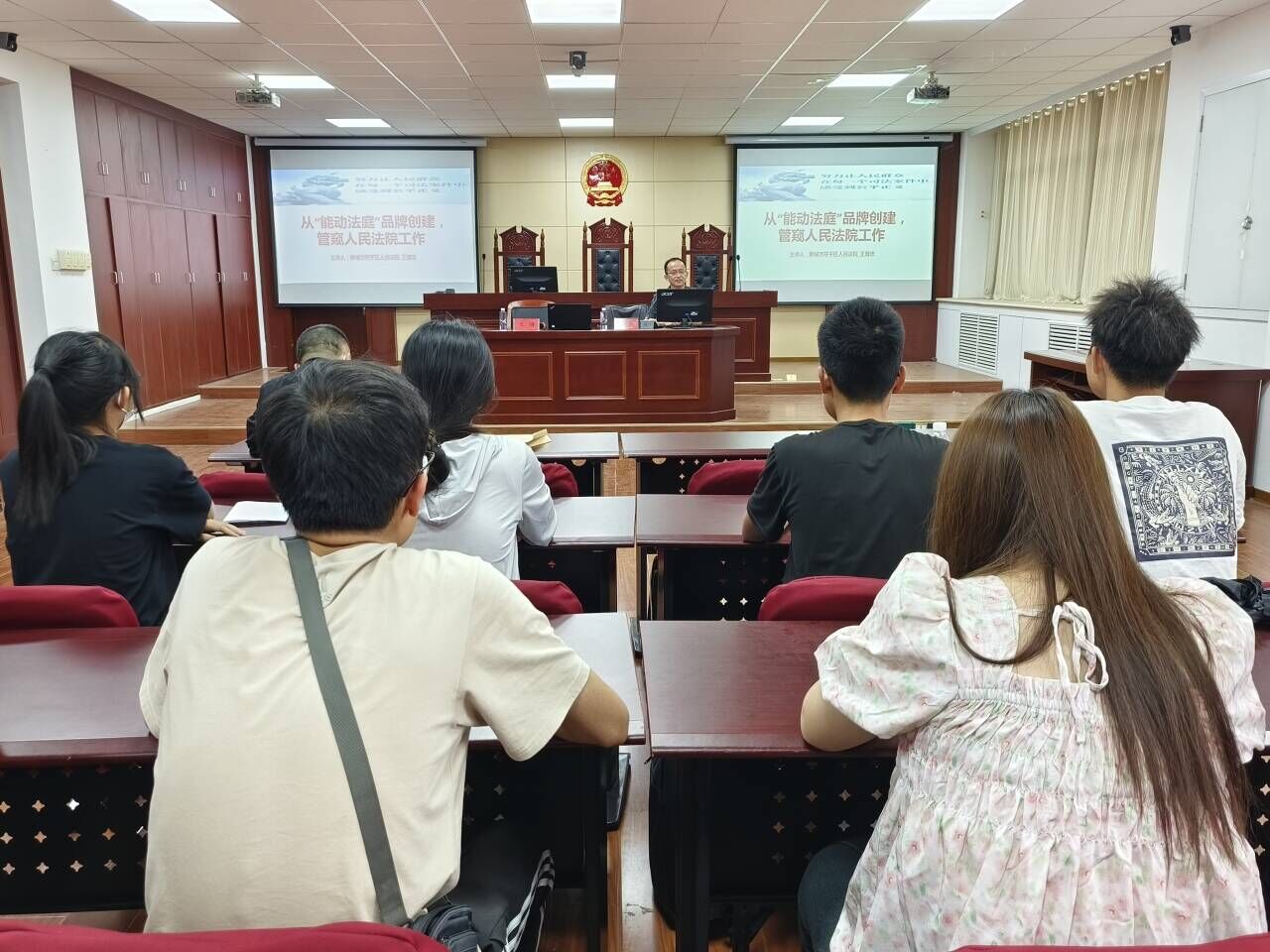 王登忠以“从‘能动法庭’品牌创建,管窥人民法院工作”为主题,围绕能动法庭创建工作展开讲解。王登忠以设立“能动法庭工作站”为案例,指出“能动法庭工作站”作为基层法庭的延伸,为开展纠纷调解、普法宣传、材料收转、巡回庭审等工作提供支撑和保障,有利于强化诉源治理,摸排村级矛盾隐患,实现“小事不出村”,夯实新时代“枫桥式法庭”底座。随后,王登忠介绍“巡回法庭+宣讲”工作模式,冯屯法庭深入事发现场,走到老百姓中间去,实事求是开展审判、调解工作,用实际行动真正打通庭审与百姓之间的最后一公里,取得审理一案、教育一片、服务更多人的良好效果。冯屯法庭在茌平区人民法院党组织的领导下,在实际工作中形成信仰更坚定、立身更正派、作风更优良、人民更满意的冯屯人民法庭精神,王登忠寄语广大法科学子要做一个有信仰,有操守,知敬畏,有理想的人,坚持做对家庭负责、对社会有益的事。