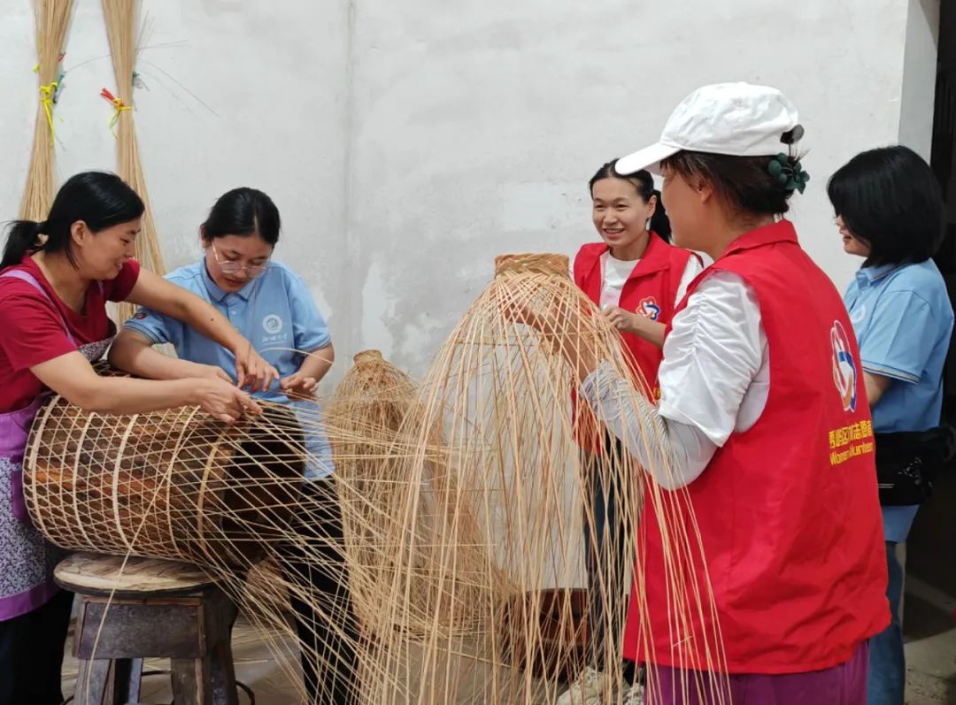 团队积极探索莆田乡村产业振兴、乡村非遗民俗以及乡村基层治理的“三维共驱”。深入走进珠坑村进行非遗民俗观察,并学习传统手工艺——莆田竹编的制作过程,听取村民讲解莆田文化中“十盘担”的礼仪文化,从物汲情,进一步了解竹编产业化方向及乡村振兴中的“竹编元素”,感受编织中深厚的“莆田振兴情”。