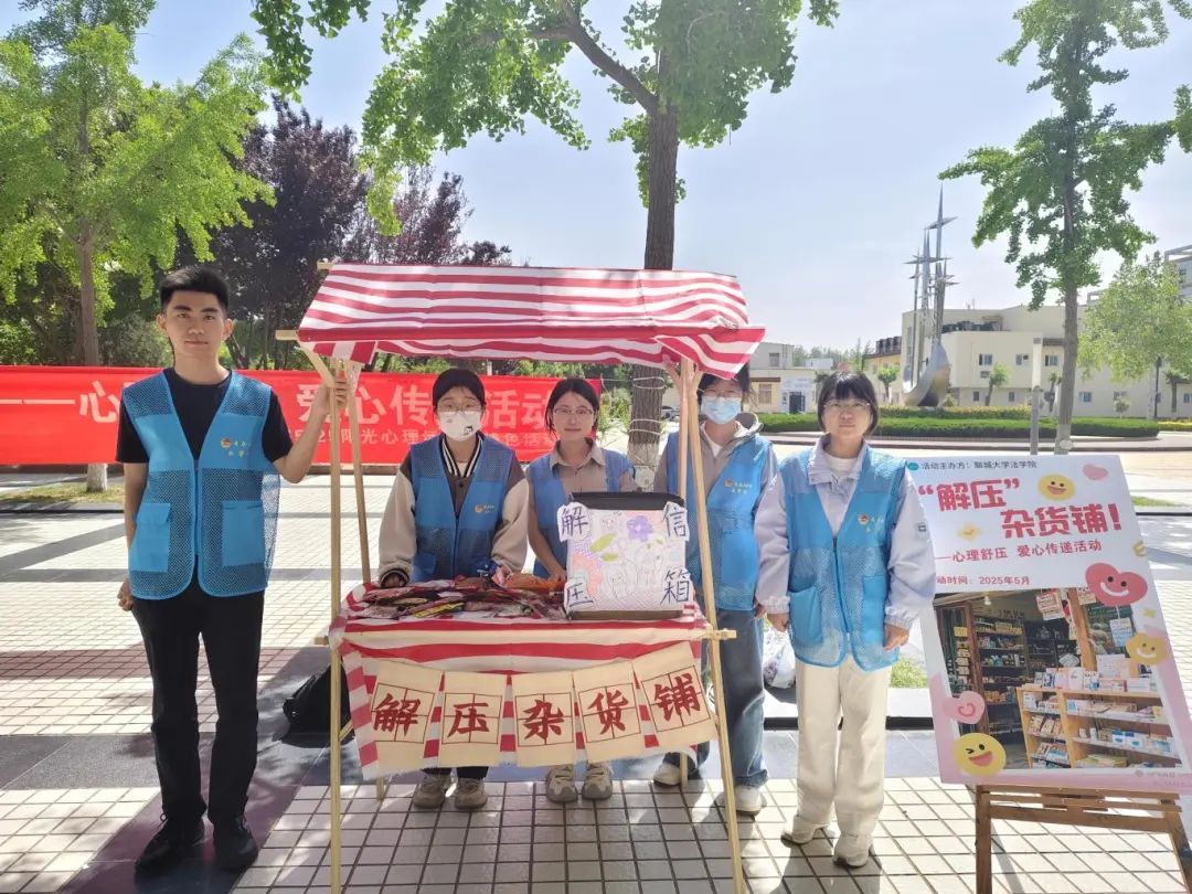 心理健康与压力调适,是当代大学生成长成才的关键素养。为切实缓解学生面临的学业压力、社交焦虑与未来困惑,提升情绪调节能力,培养阳光心态,5月17日,小宝寻花 于西校区星月广场创新开展“解压”杂货铺——心理舒压、爱心传递主题活动。