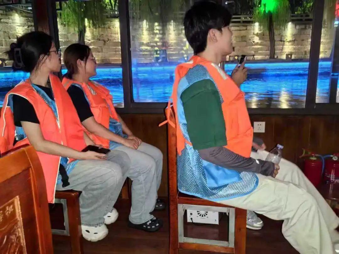 此次活动围绕了解概况、亲身体验、总结感悟三个环节展开,于实景实地中体悟文化内涵,在古今交融中凝聚奋进力量。活动过程中,调研团队通过观看《运河济宁图志》短片、浏览《清嘉庆漕运则例》影印善本等形式,采用静态与动态相结合的方法,直观感知运河开凿背后蕴含的政治考量、经济需求等时代背景及历史细节。随后,调研团队依次进入“玉堂酱园”“运河花馍坊”等非遗工坊,以更鲜活的方式感受传统技艺的魅力,传递“非遗是活态文化,需要被看见、被体验、被传承” 的理念;接着,调研团队乘船游览,在视觉、听觉的双重体验中领略运河夜景的独特韵味,体会运河水工的古老智慧。此外,调研团队针对考察体验纷纷发表自身感悟,运河文化作为珍贵的历史遗产,其传承和发展需要更多人的关注和参与,要为推动传统文化的当代复兴贡献力量。