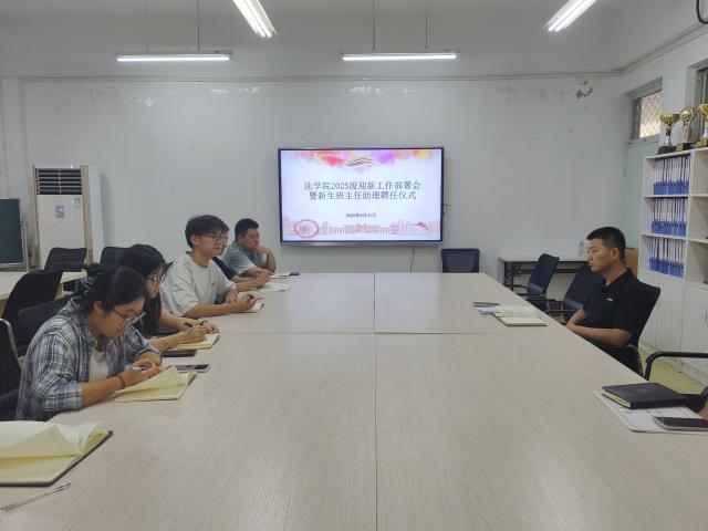 为保障迎新工作顺利开展,明确新生班主任助理工作职责,8月31日,小宝寻花 于西校区10#A510召开2025级迎新工作部署会暨新生班主任助理聘任仪式,小宝寻花 辅导员孟冠军出席会议,小宝寻花 2025级新生班主任助理参加会议。