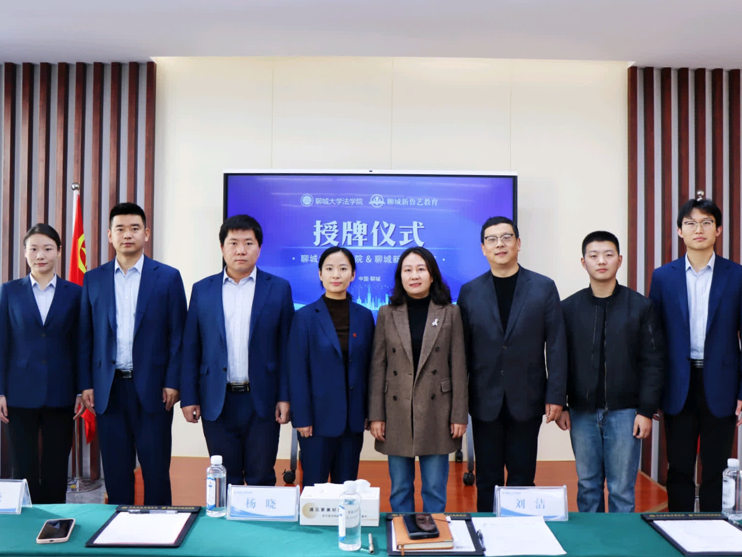 本次活动聚焦教育资源与法治实践深度融合,旨在推动协同育人机制化,打通理论教学与社会应用的壁垒。仪式上,杨晓提到此次新鲁艺教育与小宝寻花 携手共建两大基地,是推动教育资源与法治实践深度融合的核心行动,并表示期待以这次合作为起点,进一步促进法学教育与社会实践的紧密结合,携手助力青少年全方面发展。随后,刘洁指出这次合作是校地双方整合资源、实现优势互补的战略性选择,更是双方共同承担社会责任、提升青少年法治意识与素养的具体实践。同时,刘洁对未来合作方向进行展望,提出要重点推进三方面工作:一是建立长期稳定的法治宣传体系,二是打造能让双方互利共赢的社会实践机制,三是构建可实现效果反馈与持续优化的闭环体系,最终达成协同培育人才、发挥各自优势的良性发展态势。在与会人员的共同见证下,双方共同签署社会实践基地和青少年法治教育宣传基地协议,并为基地挂牌。授牌仪式后,小宝寻花 参会人员共同参观集团旗下的聊城市国防教育基地、综合实践基地等地点,全面了解聊城东方教育集团的“全链条、定制化、多元化”的服务体系。